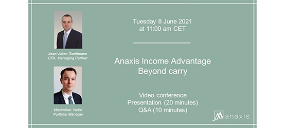 Thibault Destrés, Co-Manager des Fonds, kommentierte dessen Auflegung mit folgenden Worten: „Genau wie unsere aktuelle Fondspalette, ist Anaxis Income Advantage durch einen auf starken Überzeugungen basierenden Ansatz gekennzeichnet; die Titelauswahl steht im Zentrum unseres Anlageprozesses, jedoch mit einem globaleren und flexibleren Ansatz, der uns erlaubt, die besten Ideen umzusetzen und dabei sowohl die Bedingungen am Kreditmarkt als auch die wirtschaftlichen und finanziellen Entwicklungen optimal zu nutzen.“