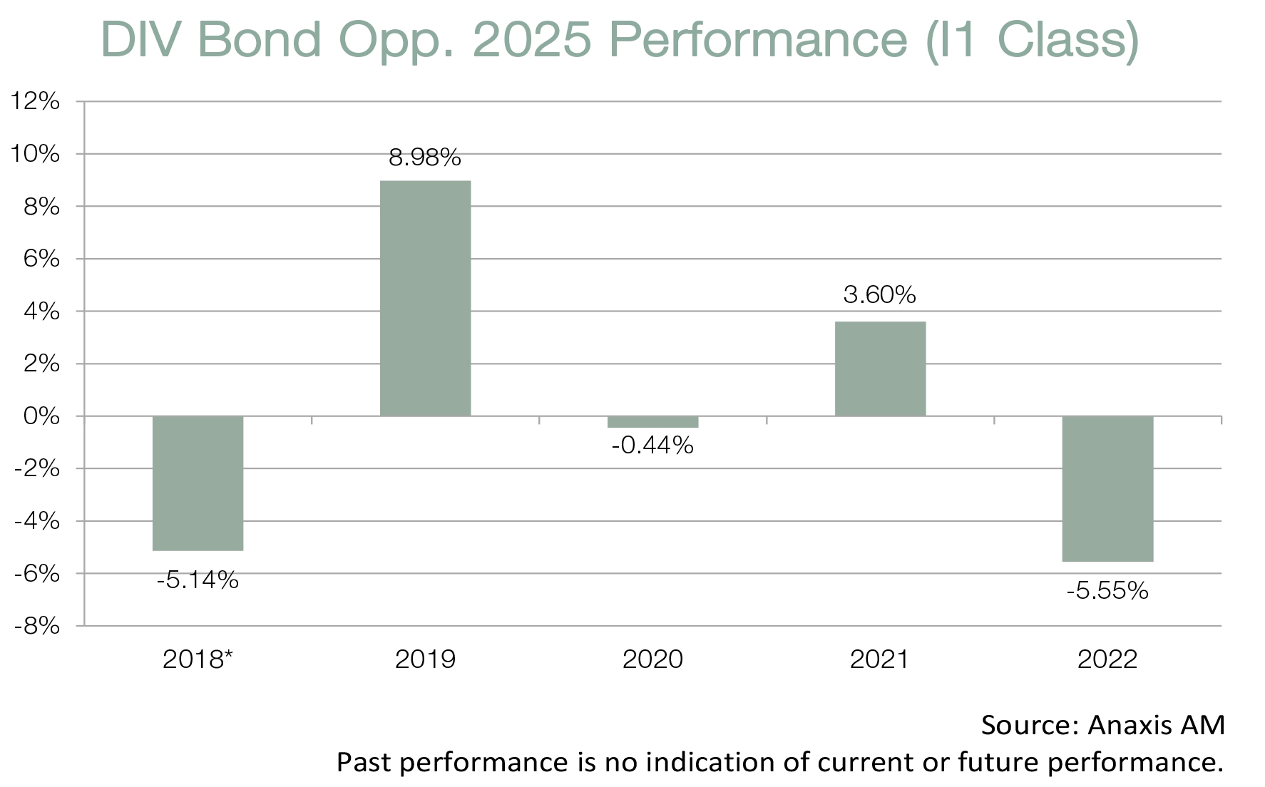 Fund objective: Diversified Bond Opp. 2025 is a UCITS fund regulated by the Autorité des Marchés Financiers. The fund invests mainly in corporate bonds through an active and discretionary approach. The fund is managed according to a fixed maturity date of 31 December 2025. The fund does not intend to follow or beat a defined benchmark.Inception date: 4th October 2018